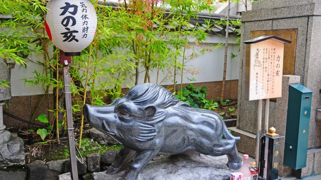 徳大寺の境内にいる像、「力の亥」は触れたものに気力、体力、財力、力を与えてくださるそうです。絶対に負けられない勝負を控えている方、悪い流れを断ち切り、運を開きたい方、仕事や商売を成功させたい方、とにかく勝ちたい方、そんな方々はぜひ一度、徳大寺を訪れてみてください。災いを退け、勝利へと突き進む摩利支天と、そのお使いである猪たちが、きっとあなたに力強い後押しをしてくれるはずです。